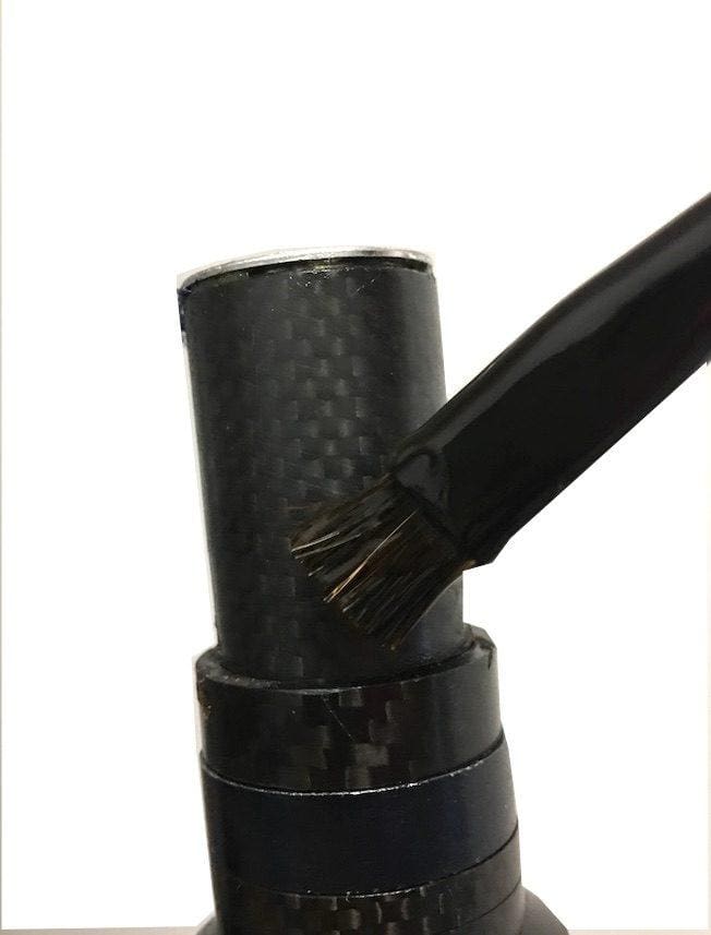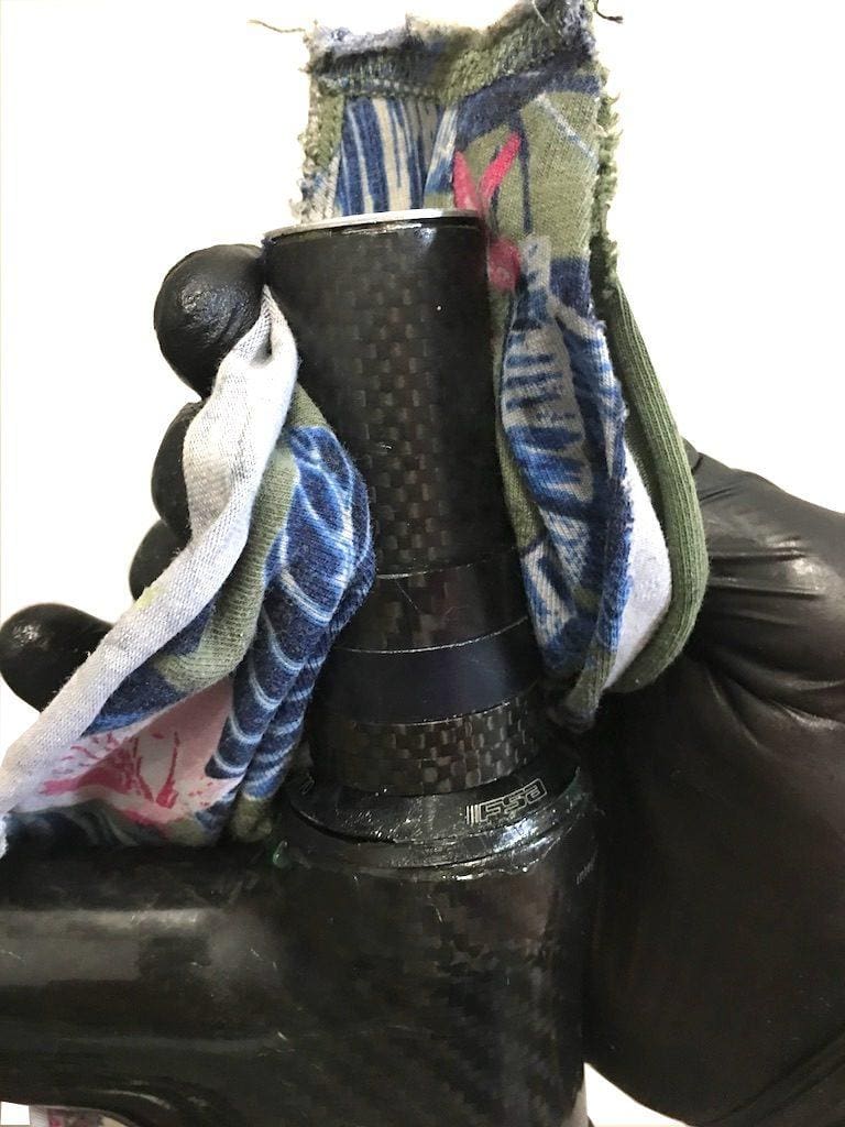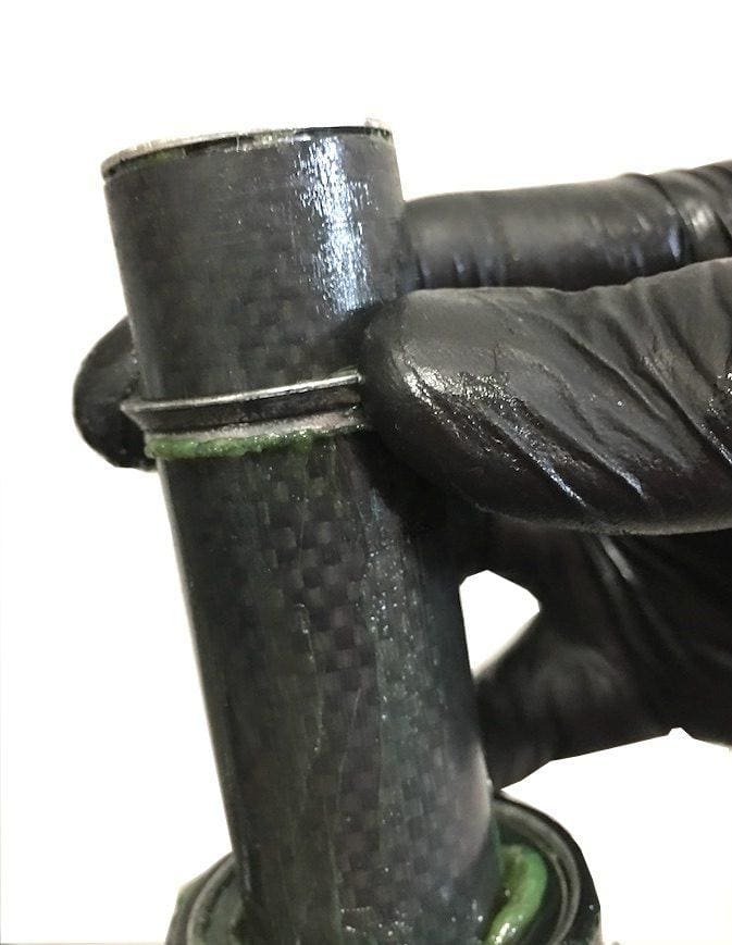 Ou appliquer de la colle à boyau sur le pivot. Il faudra alors attendre 24 h pour monter la potence. Mais le côté grippant restera en permanence, sans collage…