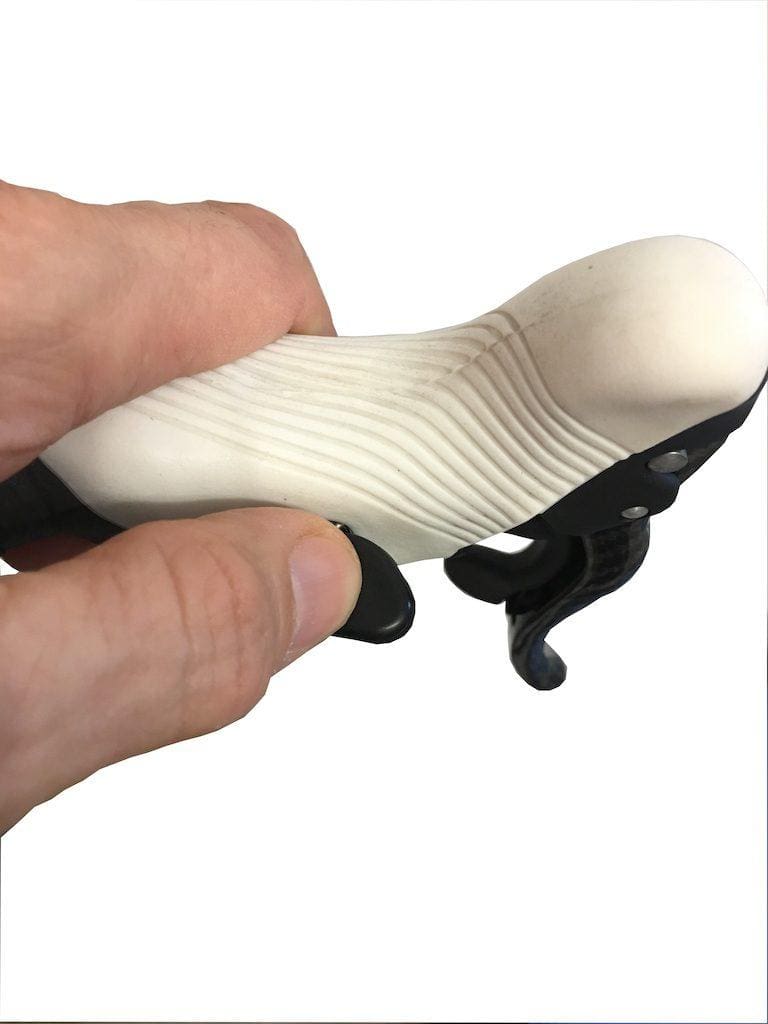 Pour régler l’indexation Campagnolo, ce sont vos mains qui vont être les plus utiles en fait ! Il faudra en effet vous servir d’elles pour tourner les manivelles et agir sur le barillet de tension du câble. Il vous faudra prévoir juste une clé Allen de 5 mm pour retendre les câbles de dérailleurs. Et si vous n’avez pas de pied, posez le vélo sur sa selle et ses leviers de frein !