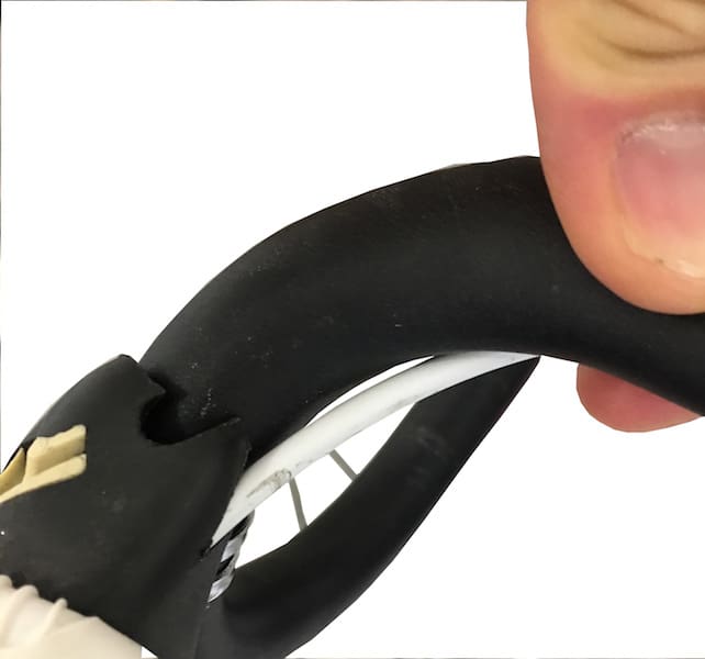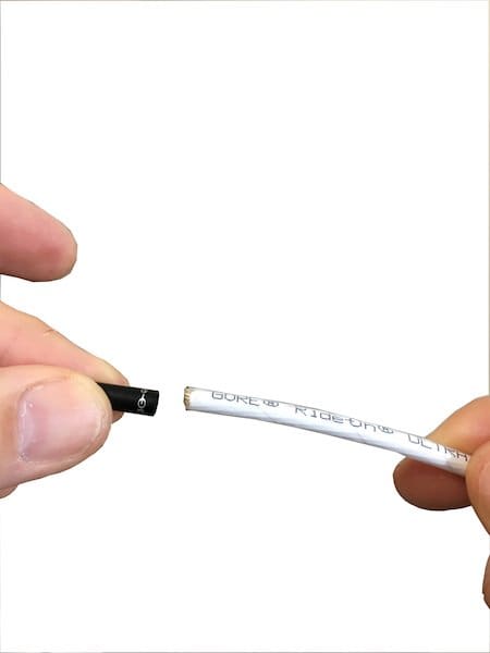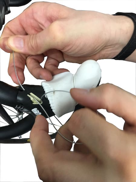 Ils serviront à isoler les gaines des butées sur le cadre. Mais surtout, ils vont permettre aux gaines de conserver leur intégrité en évitant que les fils d’acier qui les composent ne bougent ne perturbent le passage des câbles.