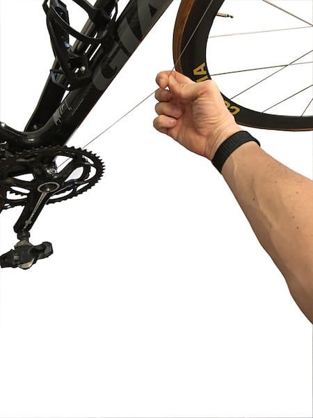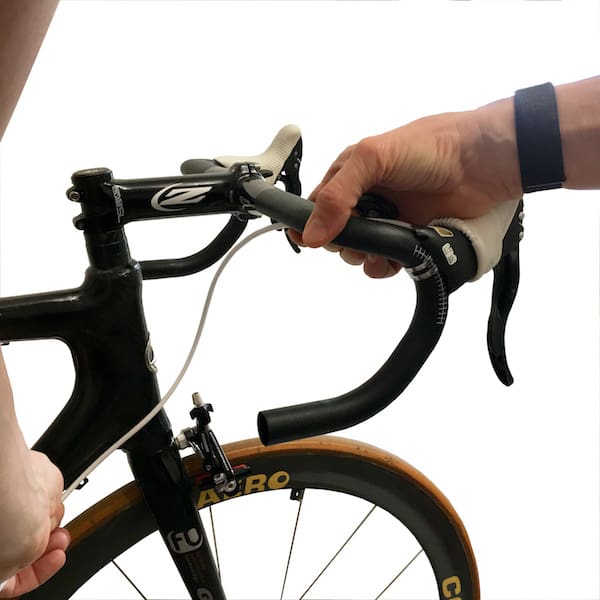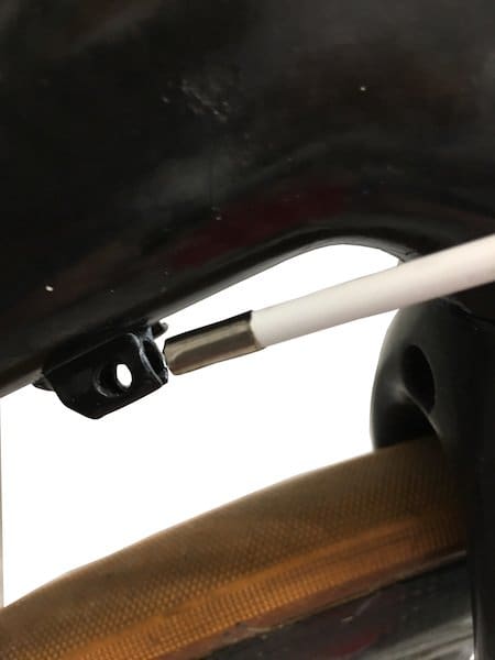 Pour le frein arrière, on fait de même en se souvenant qu‘il faudra tourner le guidon à 90°…