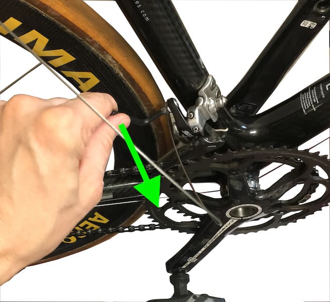 On tire ensuite le câble de dérailleur arrière au maximum pour comprimer les gaines sur toute leur longueur.