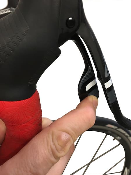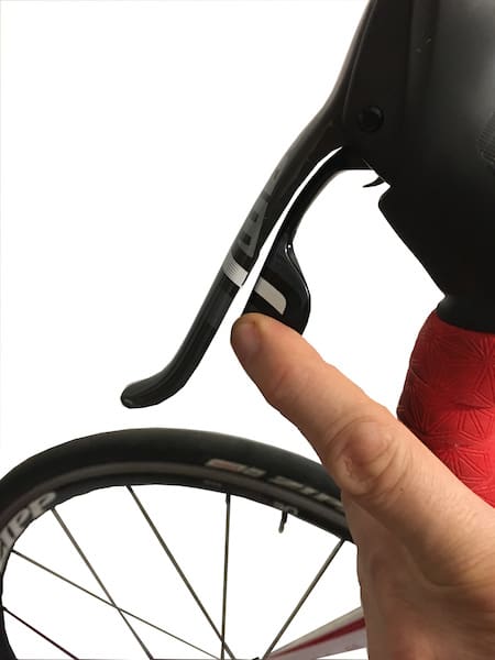 On se « remet à pédaler » et on appuie amplement sur le levier gauche jusqu’au clic.
