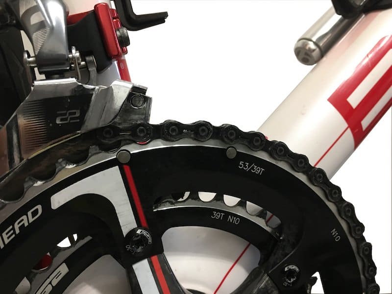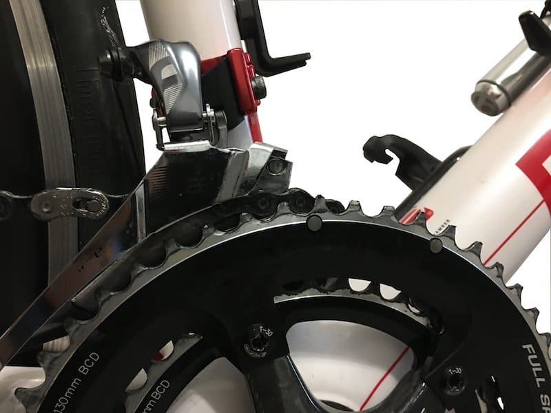 En ajustant quart de tour par quart de tour, vous devriez avoir une chaîne centrée comme cela. Mais plus que le visuel, l’absence de bruit vous indiquera que c’est parfaitement réglé.