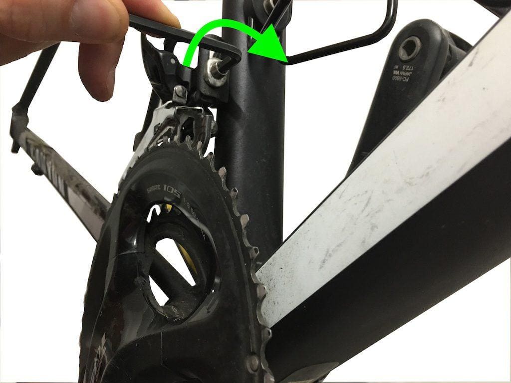 On positionne ensuite le dérailleur avant de manière à le régler en hauteur. Il faut qu’il soit légèrement serré.