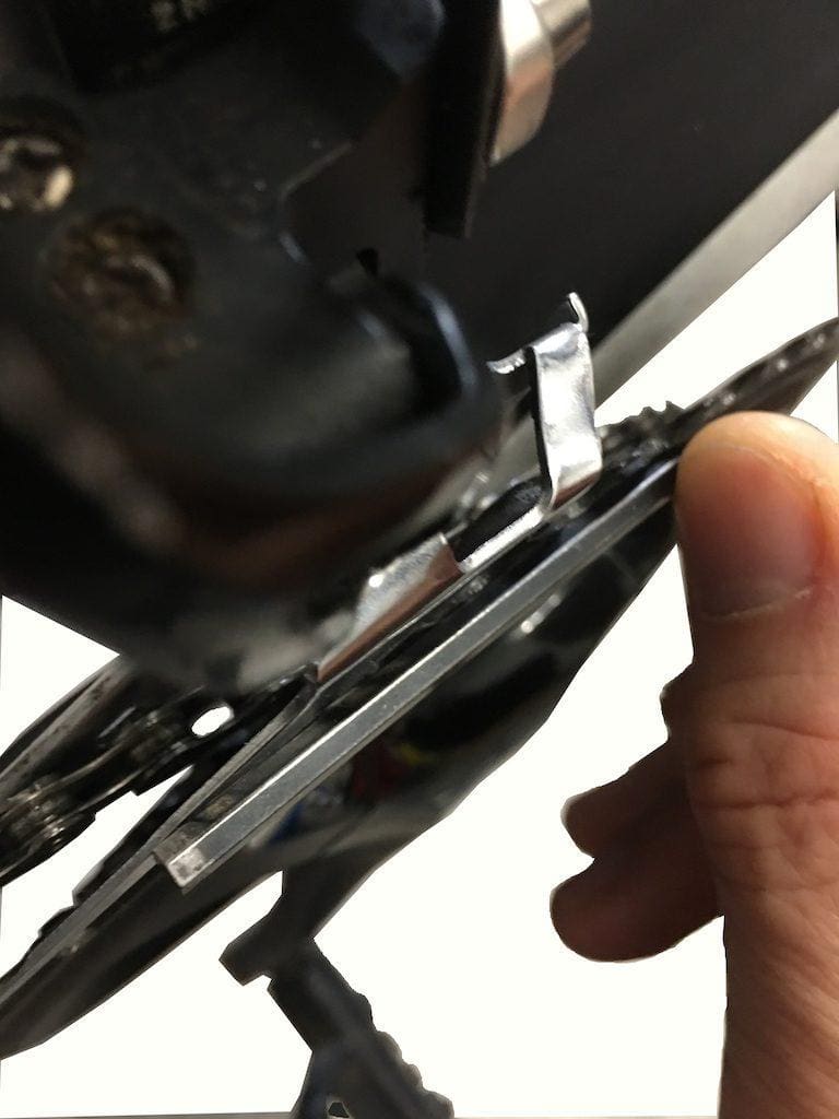 On fait de même pour le dérailleur avant. Peu de chance ici qu’elle se torde.