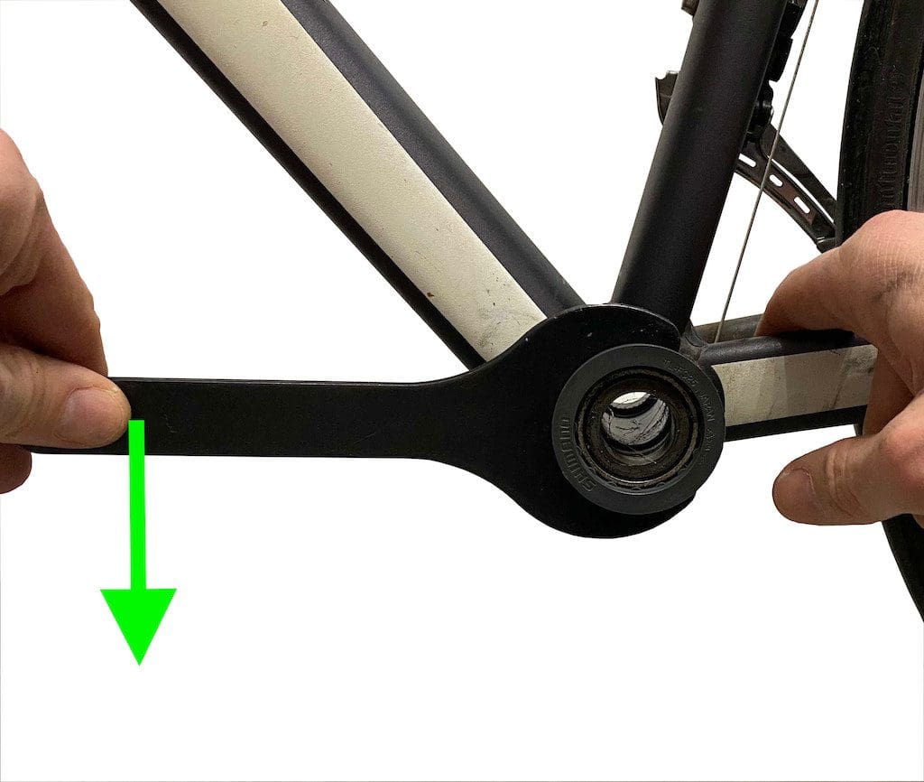 La clé est positionnée à l’horizontale vers l’avant du vélo. On pousse ensuite vers le bas. Il faut forcer un peu.