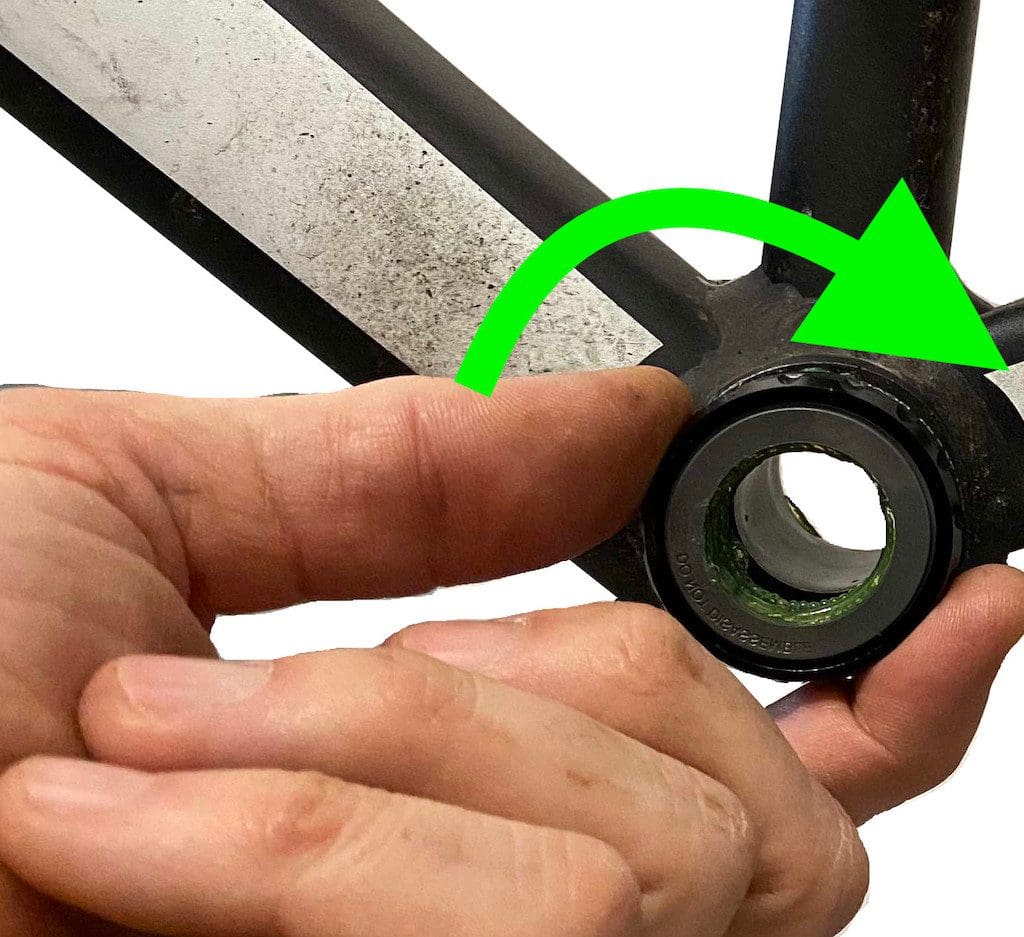 Si on n’arrive pas à insérer les cuvettes dans le filetage, il y a des chances qu’on se soit trompé de côté ! Si le serrage bloque en cours, soit les filetages ne sont pas propres, soit la cuvette est rentrée de travers. Cela peut arriver, on ne force pas, on démonte et on recommence…