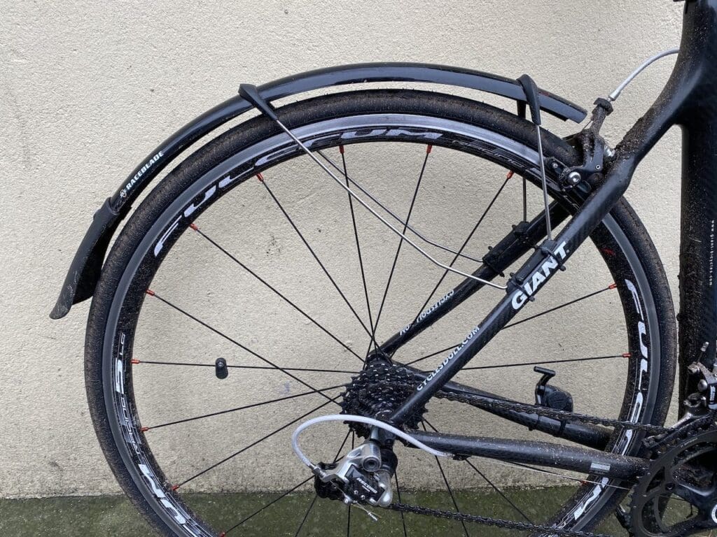 Ne comptez pas sur les SKS Race Blade Pro pour protéger le vélo. La découpe choisie par SKS protégera parfaitement le cycliste, sauf le bas de ses jambes et ses pieds. En revanche, le vélo sera autant exposé aux projections que si vous n’aviez rien monté ! Autant le savoir, mais avec les bavettes, vos vêtements souffriront moins et vos compagnons de route seront encore plus enclin à rester dans votre roue. On ne le dit pas assez, le garde-boue c’est aussi une démarche altruiste ! La tenue de ces mini garde-boues est excellente. Nous ne sommes pas passés sur les pavés de Roubaix ou des Flandres avec, mais sur les pavés parisiens et quelques chaussées en mauvais état et le réglage des SKS n’a pas bougé. Idem lors des changements de roues. Au niveau du nettoyage, c’est un peu plus compliqué dans la mesure où nous avons opté pour une « fixation durable » qui rend l’ensemble moins accessible. Avec un pinceau, si on ne démonte pas les roues, ou un jet d’eau un peu fort on solutionne cette gêne cependant. En revanche, si on veut mettre son vélo « équipé » dans la voiture cela peut être gênant si vous avez besoin d’ôter les roues. Le garde-boue arrière ayant le même encombrement que la roue elle-même…