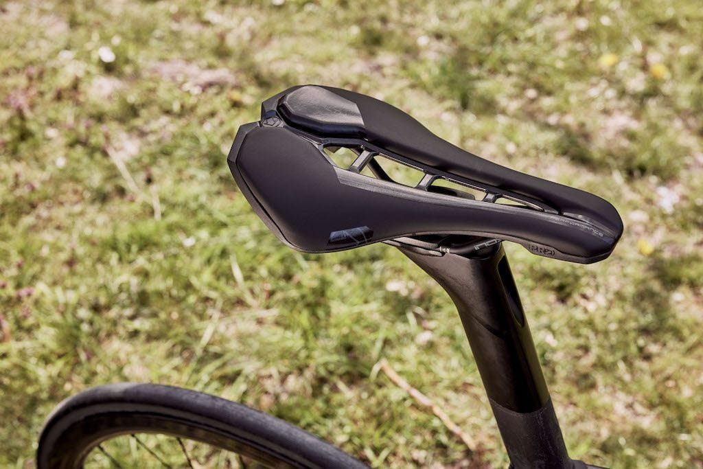 La selle PRO Stealth Curved va procurer une assise fixe aux cyclistes qui ont tendance à « glisser » sur la selle. Parfaitement calé dans son creux, l’utilisateur va pouvoir développer toute sa puissance plus facilement. Le canal central est conservé et comporte 3 ponts en carbone qui assurent la rigidité de la coque. Le nez est également plus étroit pour faciliter le passage de cuisses. Le poids est contenu à 161 g pour la version Team avec châssis carbone, la Performance est à 204 g.