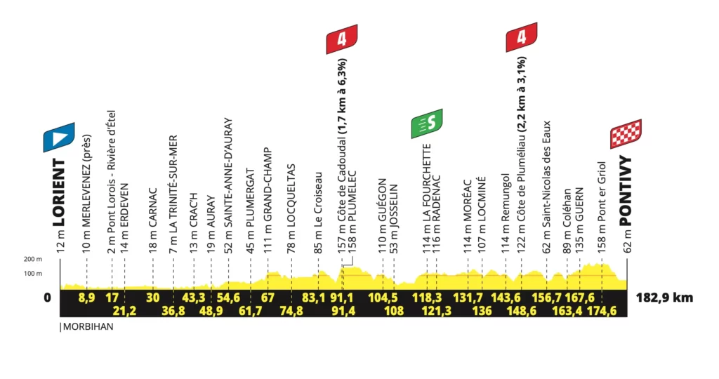 La 3ème étape du Tour de France entre Lorient et Pontivy est relativement plate. La journée devrait être rapide…