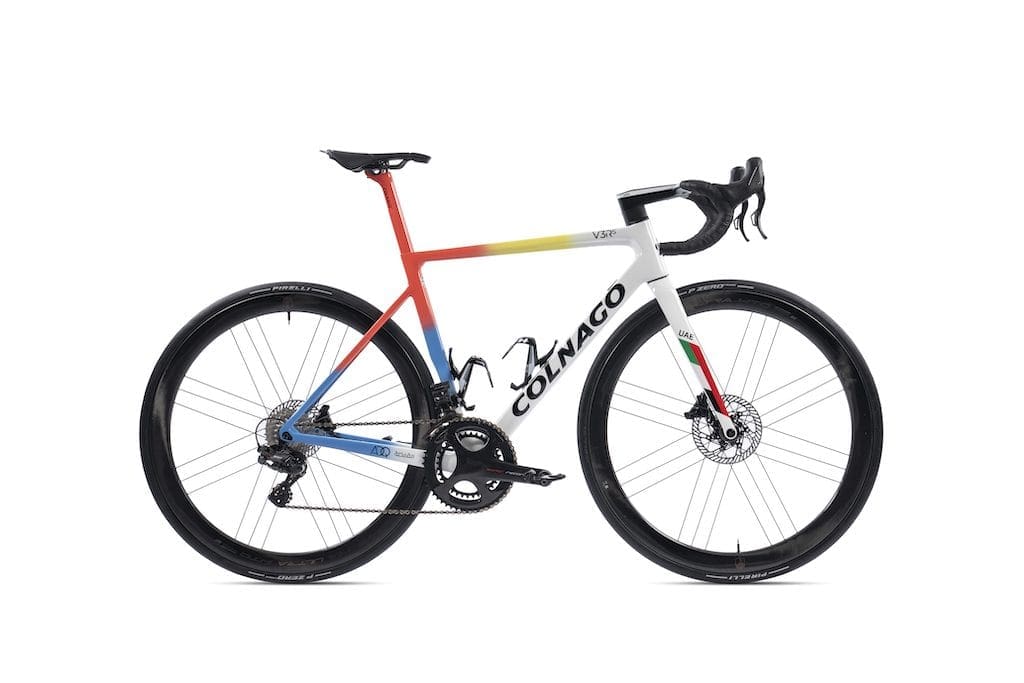 Tout l’équipement, ou presque, des vélos d’UAE Team ADQ provient de marques transalpines pour 2022 avec Colnago en tête bien entendu ! On retrouve un guidon Deda Elementi Alanera, un groupe complet Campagnolo record EPS associé à des roues Campagnolo Bora WTO. Pirelli fournit les tubeless et Elite les porte-bidons. Enfin, les pédales Favero Assioma mesureront la puissance. Les seuls matériels non issus de marques de la péninsule, ce sont les selles qui proviennent de chez Prologo et les compteurs qui ne sont pas encore définis…