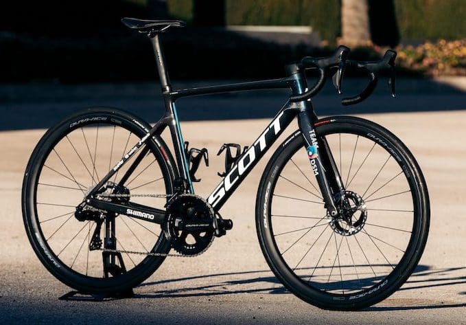 L’équipe néerlandaise reste fidèle à son équipement 2021 ! On retrouve ainsi pour 2022 dans le Team DSM des Scott Addict RC et Foil équipés tout Shimano Dura-Ace bien sûr !
