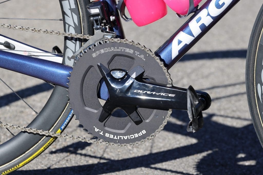 L’Argon 18 Gallium Disc est donc reconduit équipé d’une transmission Shimano Ultegra Di2 en 11 vitesses. Le pédalier avec capteur de puissance et les pédales sont issus du groupe supérieur, le Shimano Dura-Ace. Les coureurs auront la possibilité d’utiliser aussi des plateaux Spécialités TA.