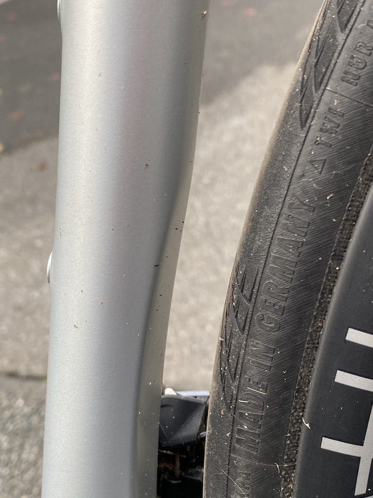 Par rapport à d’autres machines actuelles, on est étonné de sentir le cadre plus vivant. Une relance à un feu ou à un cédez-le-passage, un petit changement de rythme et on a l’impression que tout se passe en douceur. Sans avoir besoin de lutter. Le vélo réagit vite et bien tant qu’on ne travaille pas en force. En revanche si on a trop de couple, avec trop long et pas assez de vitesse, on retrouve un peu le comportement des cadres carbone tubulaires qui toléraient les erreurs de développements au prix d’une légère flexion. Mais dès lors qu’on est dans le rythme, pas de souci. En montée, le phénomène est un peu plus flagrant. On sent alors plus le petit flou quand on travaille en force, surtout au niveau des roues qui gagneraient à passer alors à 50 mm au moins pour les cadres de taille XL et au-dessus… Au train, bien calé sur la selle, en revanche, on ne sent rien bouger, même dans un faux-plat où l’on tire dessus !