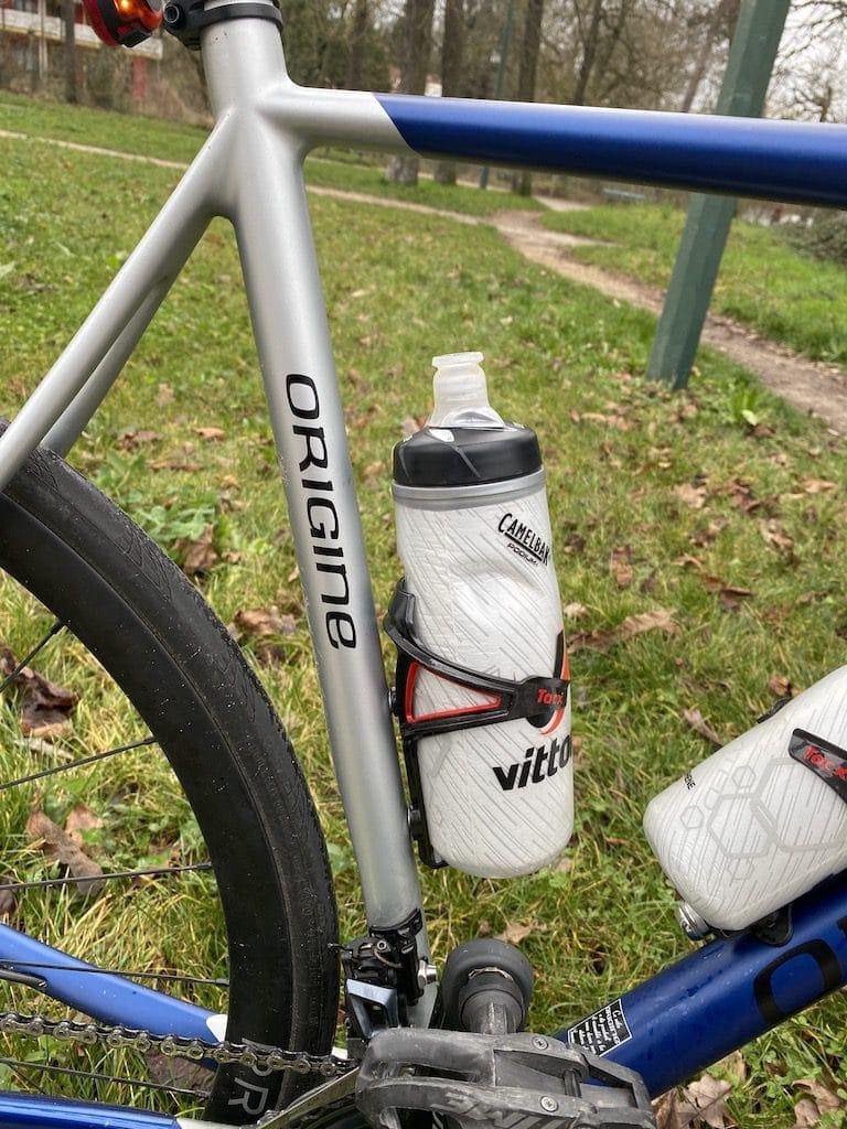 Avec ses petits tubes par rapport aux grosses poutres que l’on croise sur nombre de vélos actuels, l’Origine Axxome GTR Evo que nous avons en test fait figure d’avorton. Et pourtant il se comporte plutôt très bien à l’effort. Mais là où il surprend, c’est sur ses qualités de filtration des chocs. À son guidon, qu’on roule à fond ou qu’on se traîne, le constat est identique. Quand on passe sur des petits pavés ou des routes à gros granulés, on doit avoir des tubeless de 30 mm gonflés à 4 bars. Ben non ! Ce sont des pneus à chambre de 25 mm et gonflés à 7 bars. Pas de secousse en excès, pas de vibration, on roule sur un billard que les sorties soit courtes ou plus longues. La position participe activement à ce confort, mais l’architecture du cadre et de la fourche y est pour beaucoup elle aussi. Bien sûr un nid de poule ou un dos d’âne restent des obstacles conséquents qui ne sont en rien aseptisés. Mais si la condition physique est moyenne, l’Axxome GTR Evo atténuera sensiblement la fatigue causée par l’état de la chaussée. Et si le besoin s’en fait sentir, on peut passer à des pneumatiques de 30 mm…