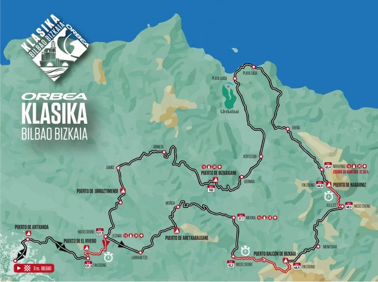 L’Orbea Klasika Bilbao Bizkaia est une épreuve cyclotouriste avec trois montées chronométrées qui aura lieu le 22 mai, la veille de nombreuses activités seront proposées à Bilbao (gratuites et payantes). Sur les 138 km de l’épreuve il y aura en effet 7 « petits » cols avec des passages à 20% à gravir de quoi expliquer les 2 900 m de dénivelés et imposer le 30, le 32 ou le 34 dents derrière !