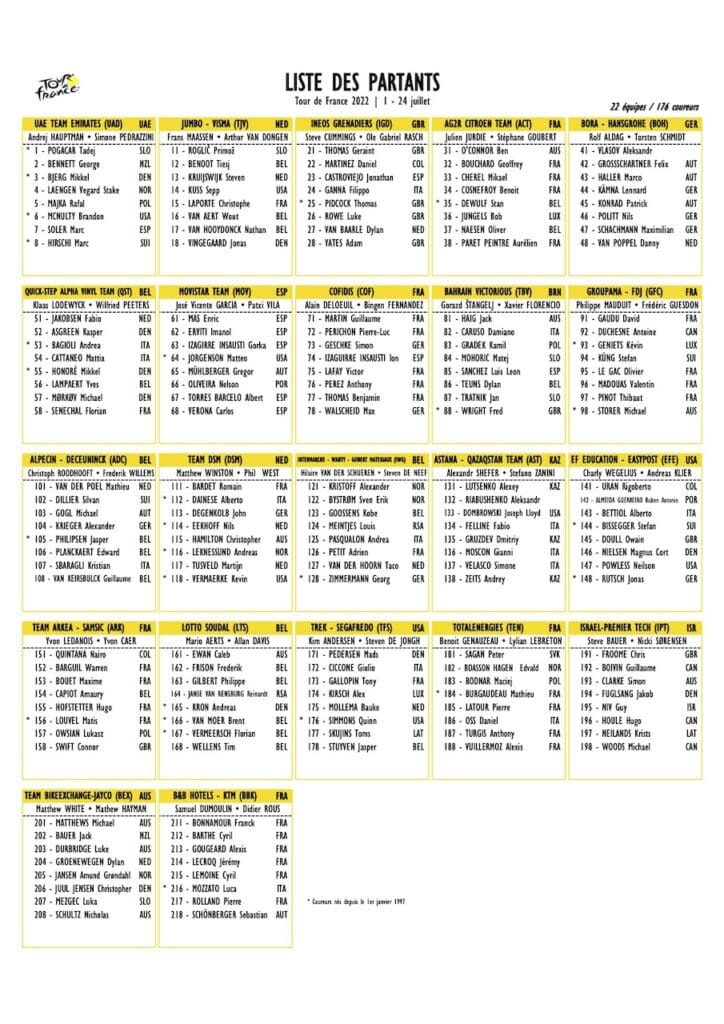 Les équipes du Tour de France 2022