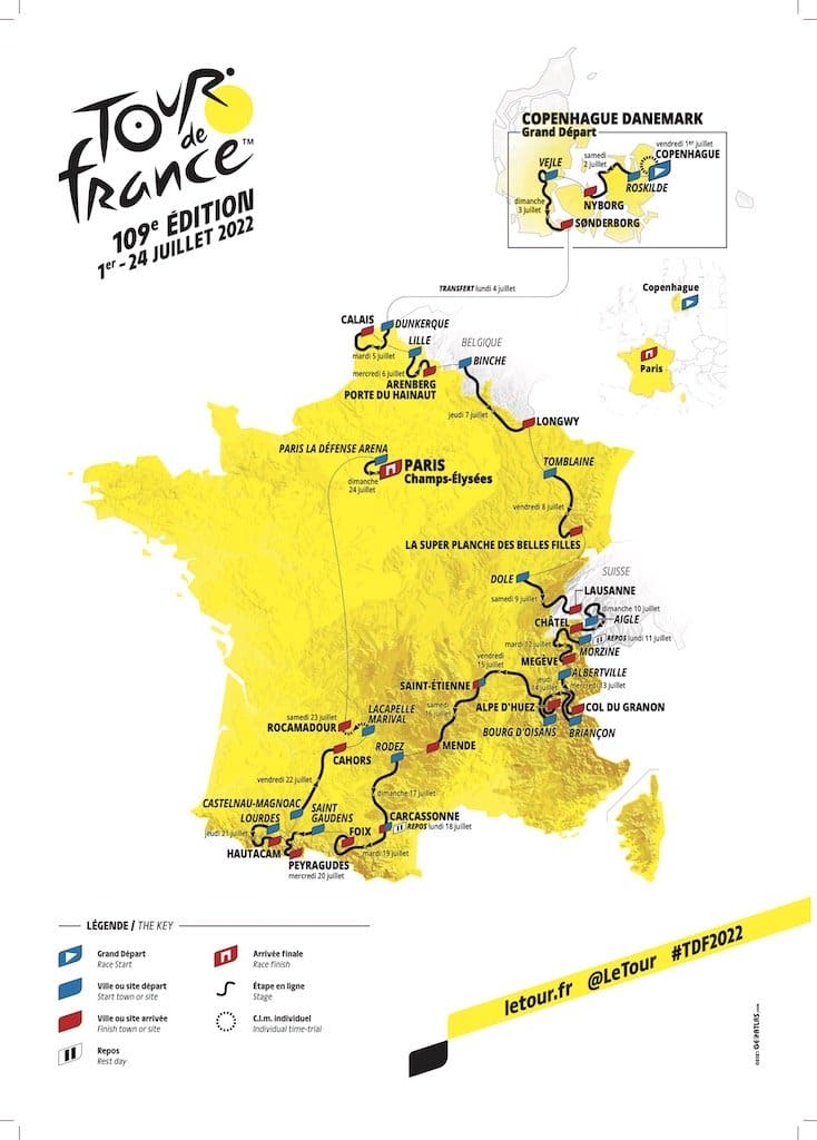 Cette 109ème édition devrait être celle d’un certain retour à la normale, mais la menace du Covid-19 plane toujours. Il y a donc de fortes chances pour que des précautions soient prises pour éviter au Tour de France 2022 l’hécatombe du Tour de Suisse. En tous cas le parcours concocté cette année devrait permettre une course intéressante et débridée. Particularité de cette année et du départ au Danemark, le Tour s’élancera un vendredi, le 1er juillet, comme au temps des prologues ! Encore quelques jours passionnants avant de savoir qui sera sacré sur les Champs-Elysées.
