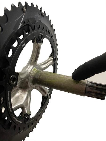 The crankset axis is coated with grease. For a perfect assembly it is essential.