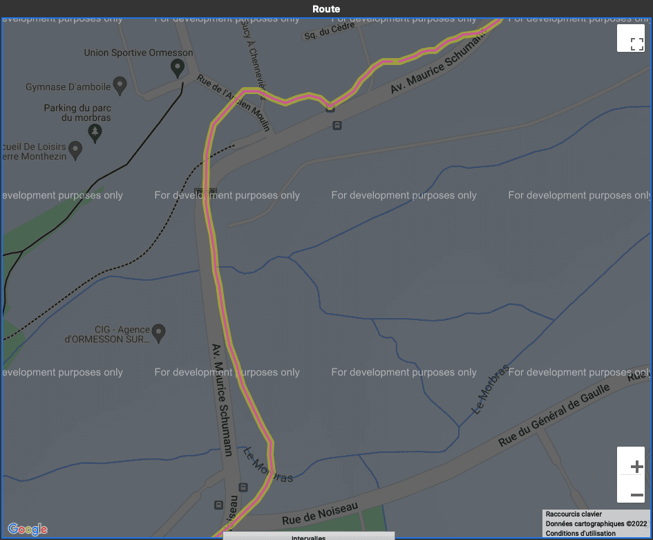 On créé son parcours sur Komoot ou Ride With GPS par exemple, on le charge et on lance l’itinéraire. La carte est précise, contient de nombreux POI, mais elle est en fait peu lisible en roulant. Quand on est au grossissement maximal, 1 cm correspond à 91 m. Avec un Wahoo Elemnt Bolt première génération au plus grand on est à 33 m pour 1 cm, presque 3 fois plus grand. Si on utilise le système impérial, on retrouve une précision un peu plus grande, puisqu’1 cm est alors équivalent à 60 m. Contrairement au compteur représenté sur la boite, on n’atteint pas les 100 pieds (30 m), on reste à 200 pieds (60 m). L’actualisation des données GPS prend environ 4 secondes. Ce qui en fonction de la vitesse de déplacement donne des traces parfois fantaisistes, quand le compteur GPS relie les points de mesure et rattrape le temps perdu.