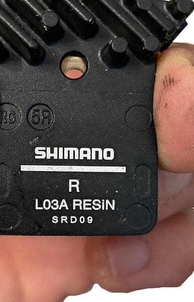 Here we have pads with a « radiator » which can provide information on the direction of assembly. Other pads do not have them, however there are always the R and L position indications as for the brake pads. Since the calipers are on the left side of the bike, the R pads are closest to the frame and the L ones are furthest away.