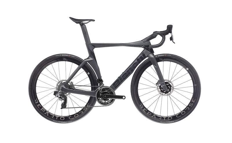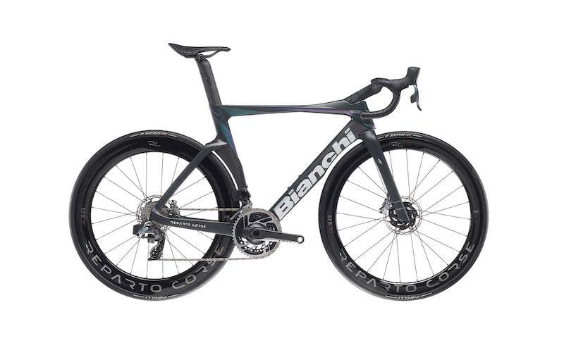 Les Bianchi Oltre RC (pour Reparto Corse) et l’Oltre Pro se partage le même moule. Le cadre Oltre RC pèse 915 g et sa fourche 420 g. On retrouve sur ce châssis une selle créée en impression 3D, la RC 139 Carbon Air (139 mm de large et 250 mm de long, 168 g) et une paire de roues RC 65/50 SPBTech (5à mm devant et 65 mm derrière). Celles-ci pèsent 1 540 g, utilisent des roulements SKF et sont compatibles tubeless. Le premier modèle est à 13 600 € et l’ensemble cadre-fourche à 5 649 €.
