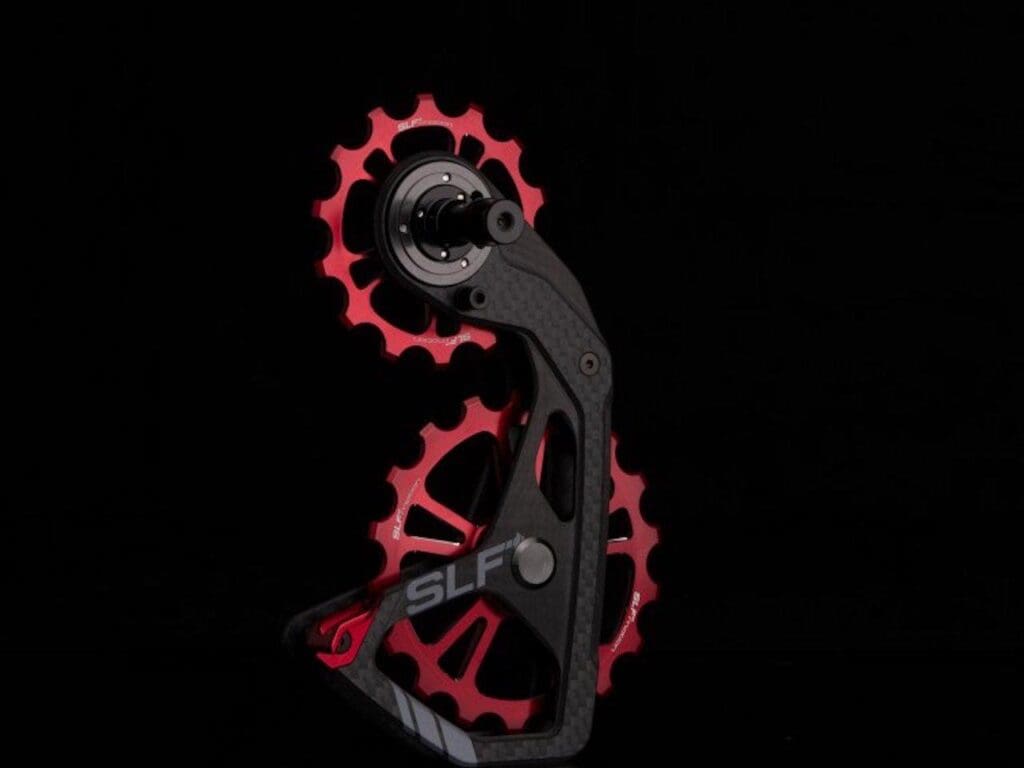 L’élément le plus remarquable et remarqué de SLF Motion sera la chape de dérailleur. Elle est déclinée en trois familles qui couvrent la route, l’effort solitaire (CLM et triathlon) et le gravel-VTT. Points communs à toutes, la chape est entièrement en carbone et il y a diverses couleurs et matières de galets ! L’EVO Speed System est le produit routier de la gamme et il est décliné pour Campagnolo, Shimano et Sram dans différentes versions à chaque fois (mécaniques, électroniques 11 et 12 vitesses). Les prix vont de 528 € à 998 € (galets en titane)…