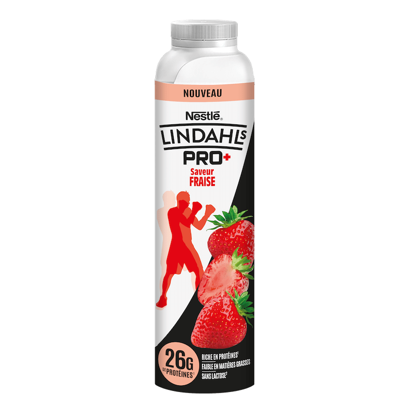 À base de lait UHT pour une conservation optimale, les boissons Lindahls Pro+ apportent 30 g de protéines par bouteille de 50 cl vendue 2,19 €, elles existent en Vanille et Chocolat et seront en vente à partir de juin seulement. En complément des boissons lactées saveurs Stracciatella et Fruits Exotiques, Lindahls Pro+ propose la fraise avec 26 g de protéines pour 33 cl qui dispose d’une faible teneur en matières grasses. Son prix est de 1,95 € et la disponibilité est début avril.