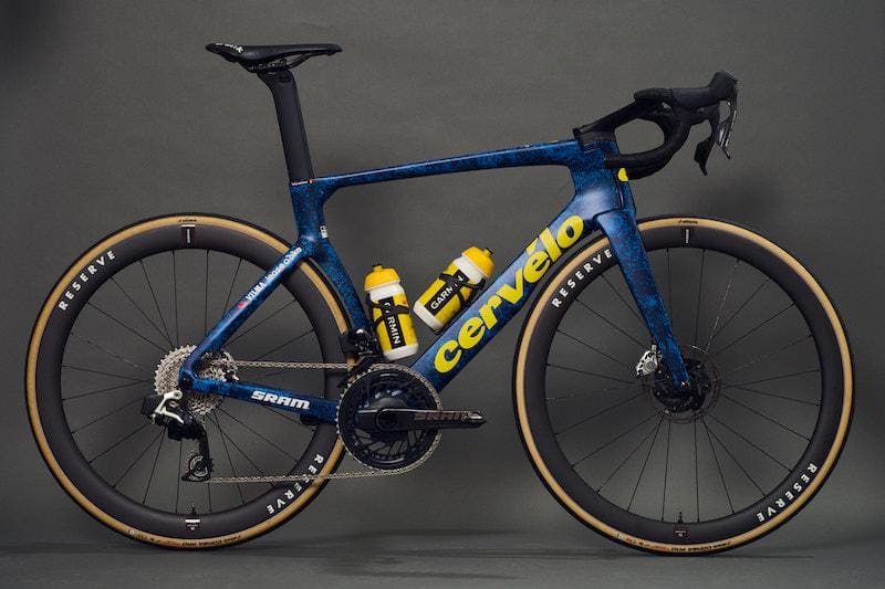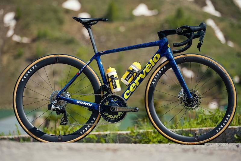 Il y a de fortes chances que les maillots et vélos des Visma-Lease a Bike soient bleus sur ce Tour de France 2024 pour éviter toute méprise avec le Maillot Jaune. Le montage des machines ne devrait pas connaître de modification, le nouveau groupe Sram disposant de série de roulements céramiques. Côté plateaux on devrait trouver beaucoup de 54-41 et de 56-43 associé ici à des cassettes commençant par un 10 ! Le 52-39 fera éventuellement son apparition en montagne. Côté vélos, le Cervélo S5 sera le plus employé sur le Tour de France 2024, les pros utiliseront le R5 en montagne et le P5 lors des contre-la-montre.