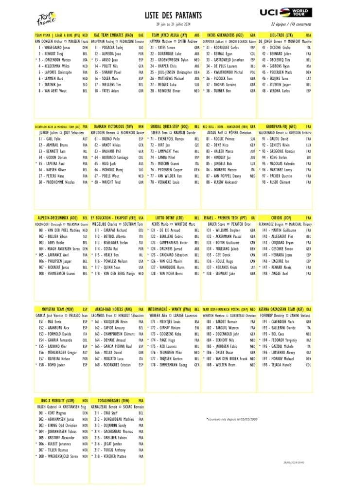Les équipes participantes au Tour de France 2024 et leurs vélos et les paddocks :