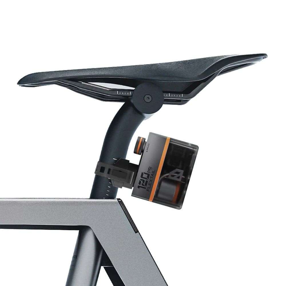 Le compresseur Flextail Tiny Tire Pump ACS est vendu 76 €. Il pèse 125 g et se charge en 35 minutes via un port USB C. Il permet de gonfler 3 roues en 700×23 de 0 à 7 bars, ou 2 pneus de 700×23 à 8 bars ou encore 2 pneus de 700×25 à 7 bars. On programme la pression, un appui sur le bouton et le gonflage s’effectue en 30 secondes environ. Le Flextail Tiny Tire Pump ACS est associé à un feu arrière de 15 lumens permettant 3 modes (fixe, clignotant ou modulé) et il a une fixation par collier qui permet de le positionner derrière la tige de selle.