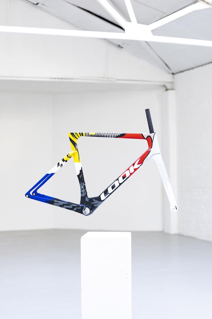 Effectuée lors de l’évènement londonien Rouleur Live 2024, la performance The Art Of Cycling × Jay Kaes débouche sur une série limitée de 50 kits cadre décorés à la main par l’artiste. Lors de la manifestation, Jay Kaes avait peint deux cadres Look 795 Blade RS, il y en aura désormais 50 de disponibles à la vente !