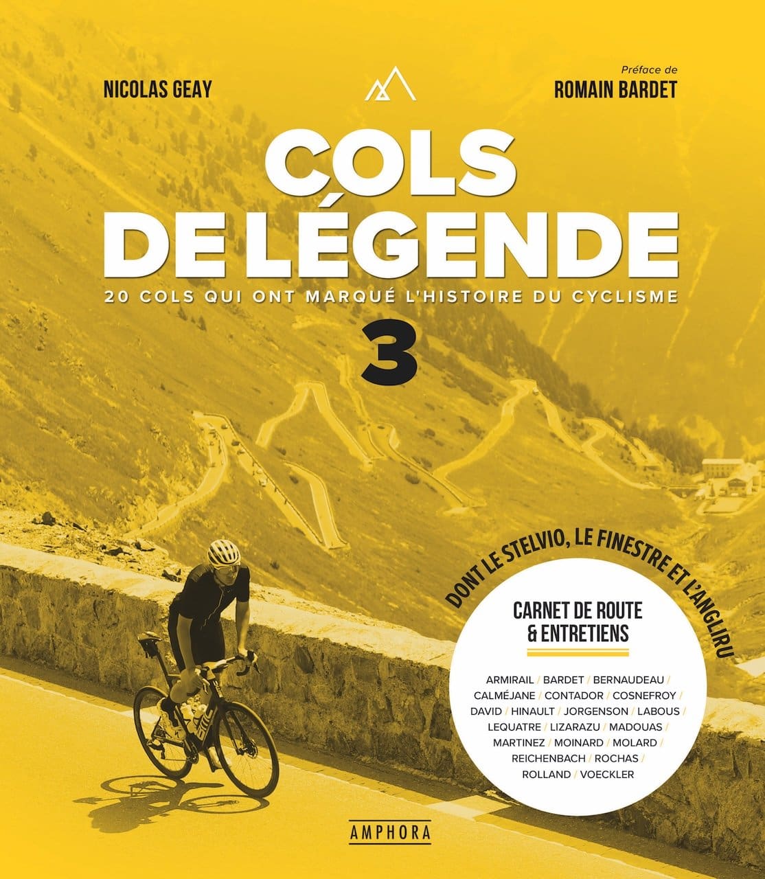 Au travers des 256 pages du tome 3 de Cols de légende, Nicolas Geay présente 20 cols inédits de France, d’Espagne et d’Italie. On peut ainsi y parcourir entre autres les descriptions du Galibier, de la Croix de Fer, de La Madeleine, du Stelvio, de Finestre,de la Fauniera ou de l’Angliru et les témoignages de ceux et celles qui les ont gravi comme Bernard Hinault, Romain Bardet, Juliette Labous, Lenny Martinez, Alberto Contador, Thomas Voeckler, Matteo Jorgenson, mais aussi Bixente Lizarazu ! Cols de légende comporte 256 pages – 23,5x27cm est vendu 34,95 € et est surtout préfacé par Romain Bardet !