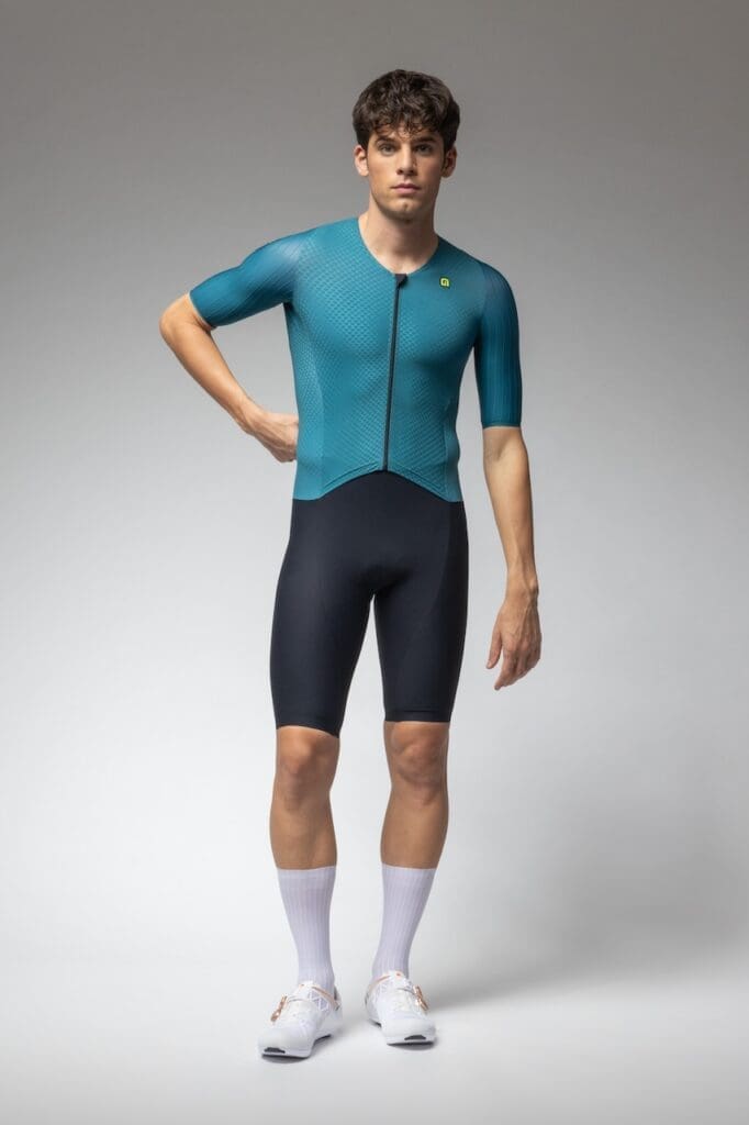 En parallèle, Alé propose le maillot Sprinter 2.0. Ce textile utilisant le tissu Drain Cool devant et du fil carbone à l’arrière combine ventilation, respirabilité et aérodynamisme.