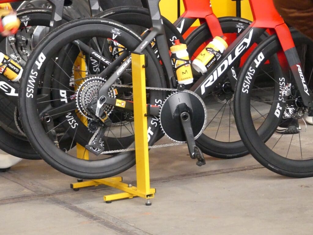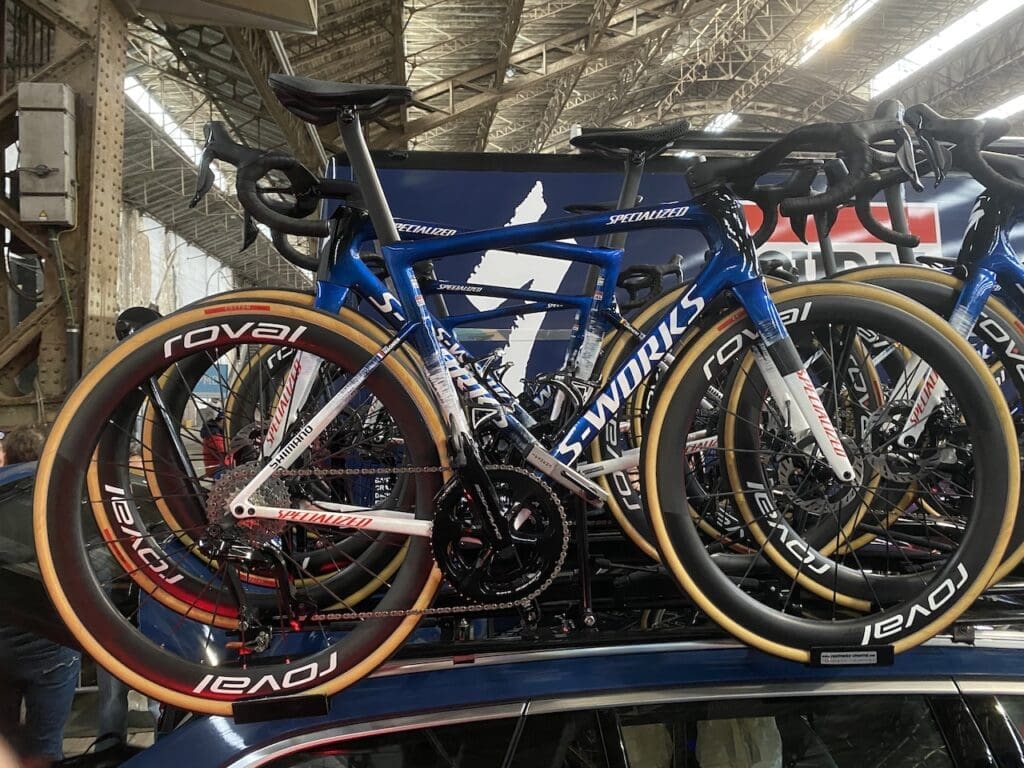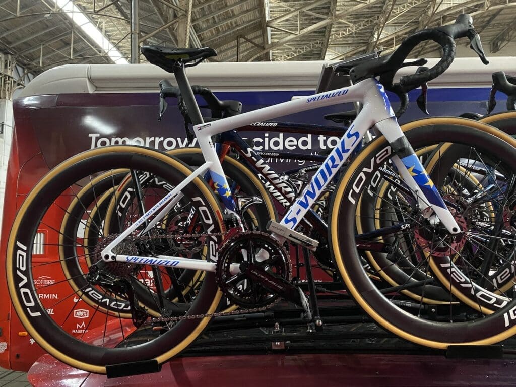 Les Trek Madone 8 étaient utilisés par les deux équipes Lidl-Trek. Crédit Frédéric IehlCanyon//Sram Zondacrypto propose des vélos personnalisés pour chacune de leurs athlètes. Crédit Frédéric IehlPas de changement de matériel pour le Team SD Worx-Protime. Crédit Frédéric IehlIdem chez Soudal-Quick Step. Crédit Frédéric IehlEt chez Red Bull-Bora-Hansgrohe.Crédit Frédéric IehlLe nouveau vélo de Biniam Girmay, chez NSN Cycling Team. Crédit Frédéric IehlLes Scott de course ont toujours des messages dans leurs marquages ! Crédit Frédéric IehlLes Lotto-Intermarché et les Lotto-Intermarché Ladies ont choisi l’Orbea Orca Aero pour cette épreuve. Crédit Frédéric IehlChez Ineos-Grenadiers, le Dogma F est plus lumineux. Crédit Frédéric IehlMais celui des Pinarello-Q36.5 Cycling Team est plus classe ! Crédit Frédéric IehlLes nouveaux Cannondale SuperSix Evo LAB71 étaient présents chez EF Education Pro Cycling et Saint Michel-Preference Home-Auber. Crédit Frédéric IehlLes deux teams Uno-X Mobility ont adopté le Ridley Noah Fast. Crédit Frédéric Iehl