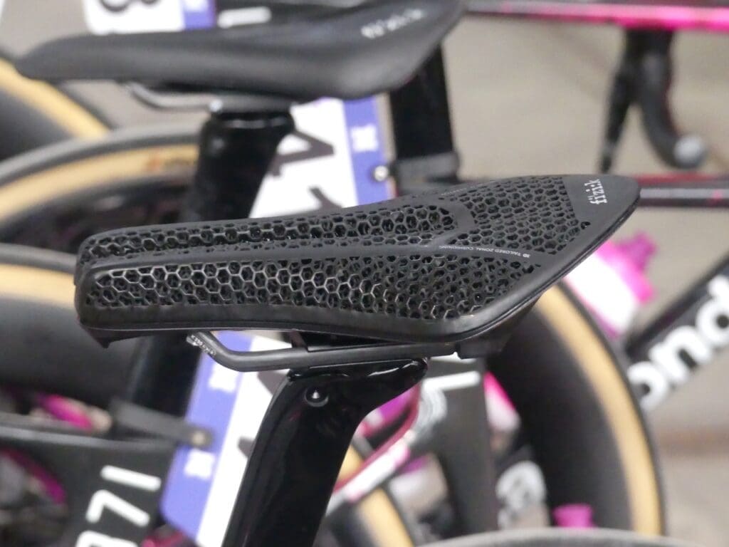 Les positions aéro se rapprochant de plus en plus de celles de contre-la-montre, les contraintes sur la zone périnéale peuvent augmenter. Après les selles courtes place au modèle de chrono ! On les a surtout vu chez EF Education-Easy Post ( le team masculin d’EF Pro Cycling), et du côté de teams féminins, les selles sans bec comme les ISM sont aussi très employées.