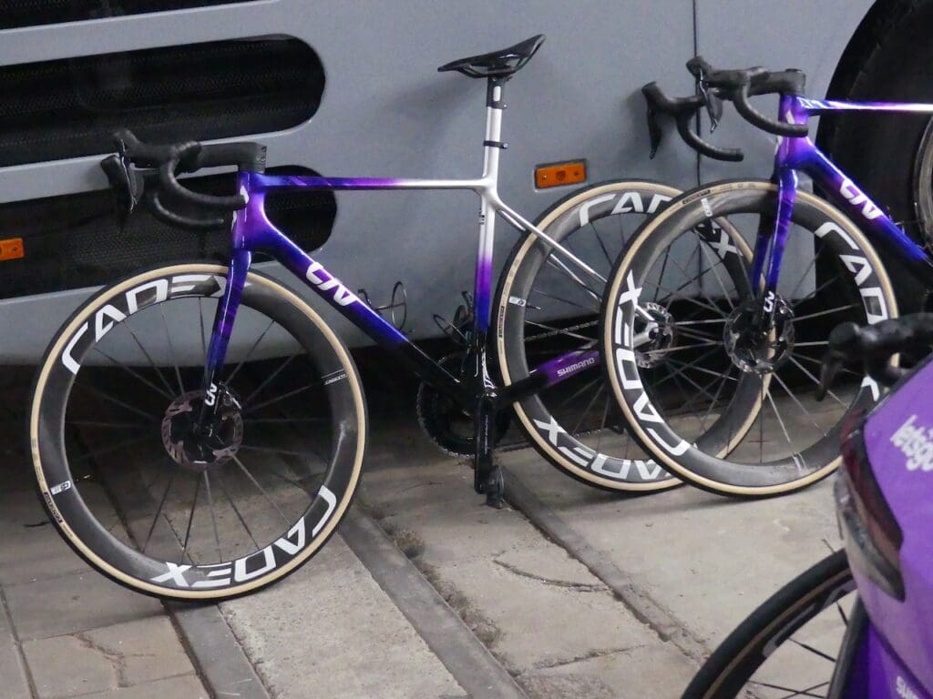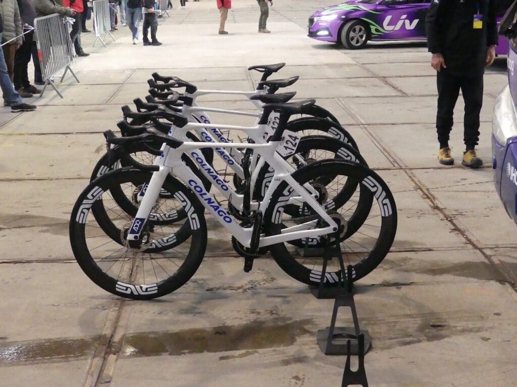 Les vélos aéros prennent donc le dessus et s’il y a encore quelques équipes pour utiliser des vélos « plus légers » elles sont l’exception. Il y avait ainsi chez Bahrain-Victorious un Bianchi Specialissima RC, mais chez Liv-Alula-Jayco en revanche la moitié de l’équipe était sur le Liv Enviliv Advanced SL et l’autre sur le Langma Avanced SL, une nouveauté… Enfin chez UAE Team ADQ, le team féminin, on croisait un ou deux Colnago V5rs en complément des Colnago Y1RS.