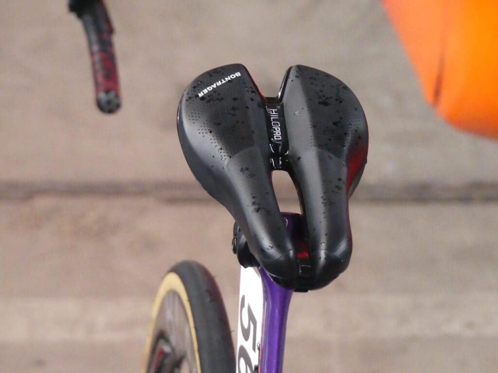Les selles ISM permettent de se passer de l’appui périnéal. Utiles pour tous les sexes. Crédit Frédéric IehlLa fi’zi:k Transiro Aeris adaptive est dévolue aux triathlon longue distance, elle était présente chez EF Education-Easypost. Crédit Frédéric IehlLa selle Wove V8 TT+Tri se croisait chez Human Powered Health. Crédit Frédéric IehlCette selle Bontrager HlLo Pro est généralement dédiée au triathlon et au chrono. Elle était également visible chez Human Powered Health. Crédit Frédéric Iehl